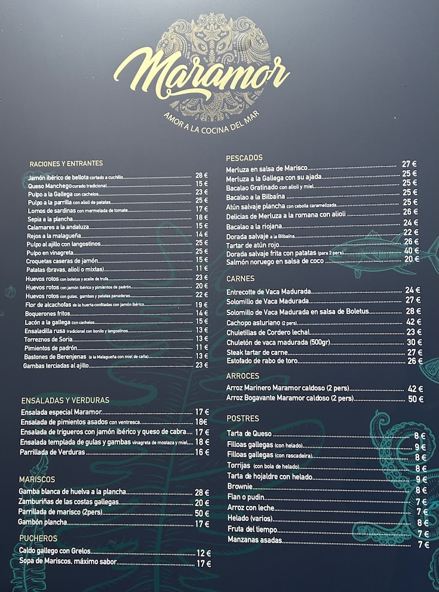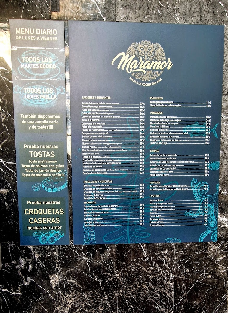 Maramor is renowned for its generous portion sizes and well-crafted dishes, ensuring a satisfying experience for every guest. Highlights include a delightful salad with jamón and goat cheese, paired beautifully with grilled tomatoes and asparagus—each bite bursting with flavor. Many patrons praise the speedy service and the value found in their weekly menu, offering a taste of traditional Spanish fare without breaking the bank.